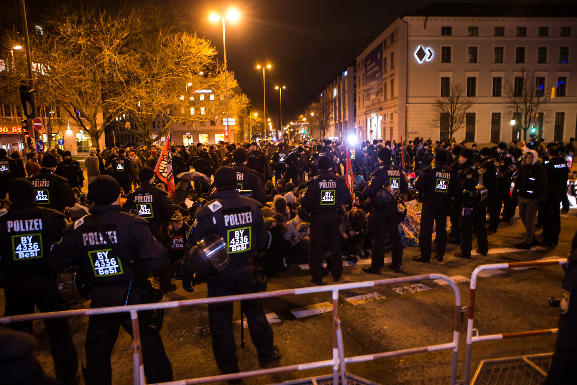 Nach Polizeiangaben beteiligten sich allein am Odeonsplatz über 600 Gegendemonstranten am Protest gegen Pegida. In der Blockade sollen sich noch einmal etwa 100 Personen versammelt haben. Von der Lautstärke her, waren die Pegida-Gegner noch deutlich überlegener.