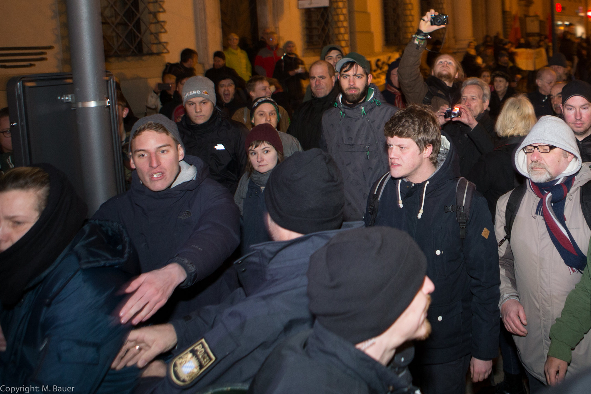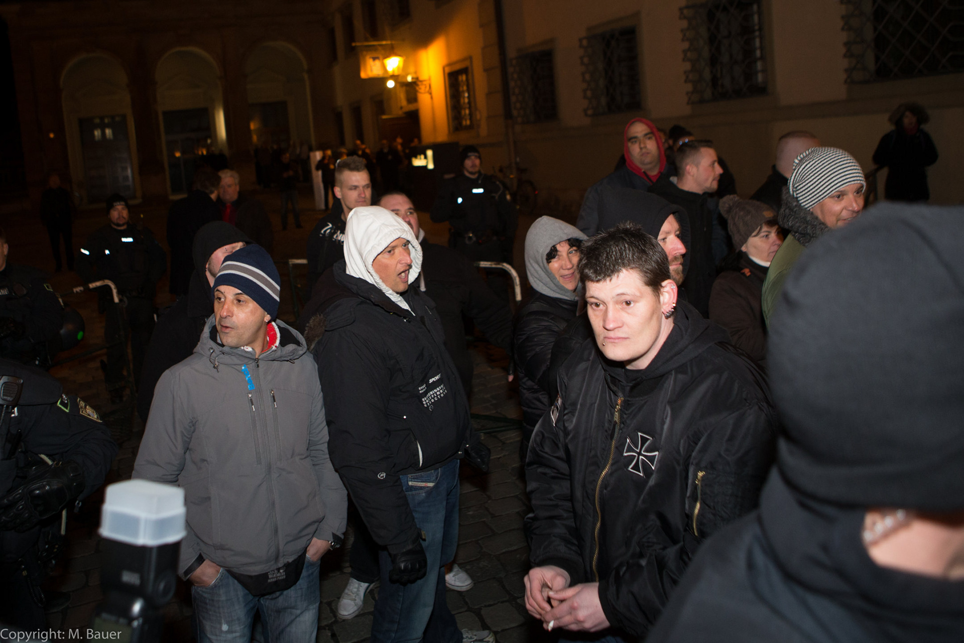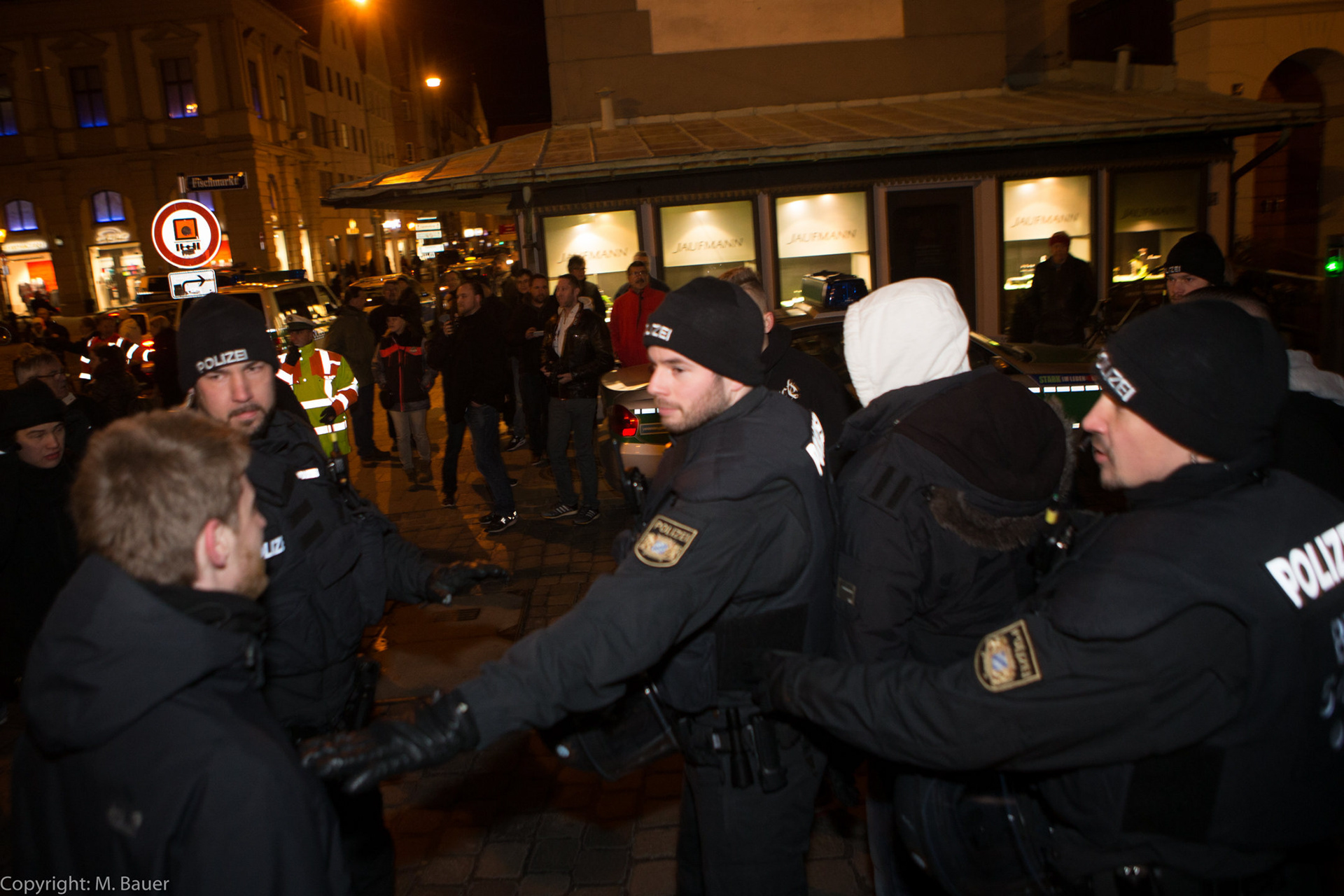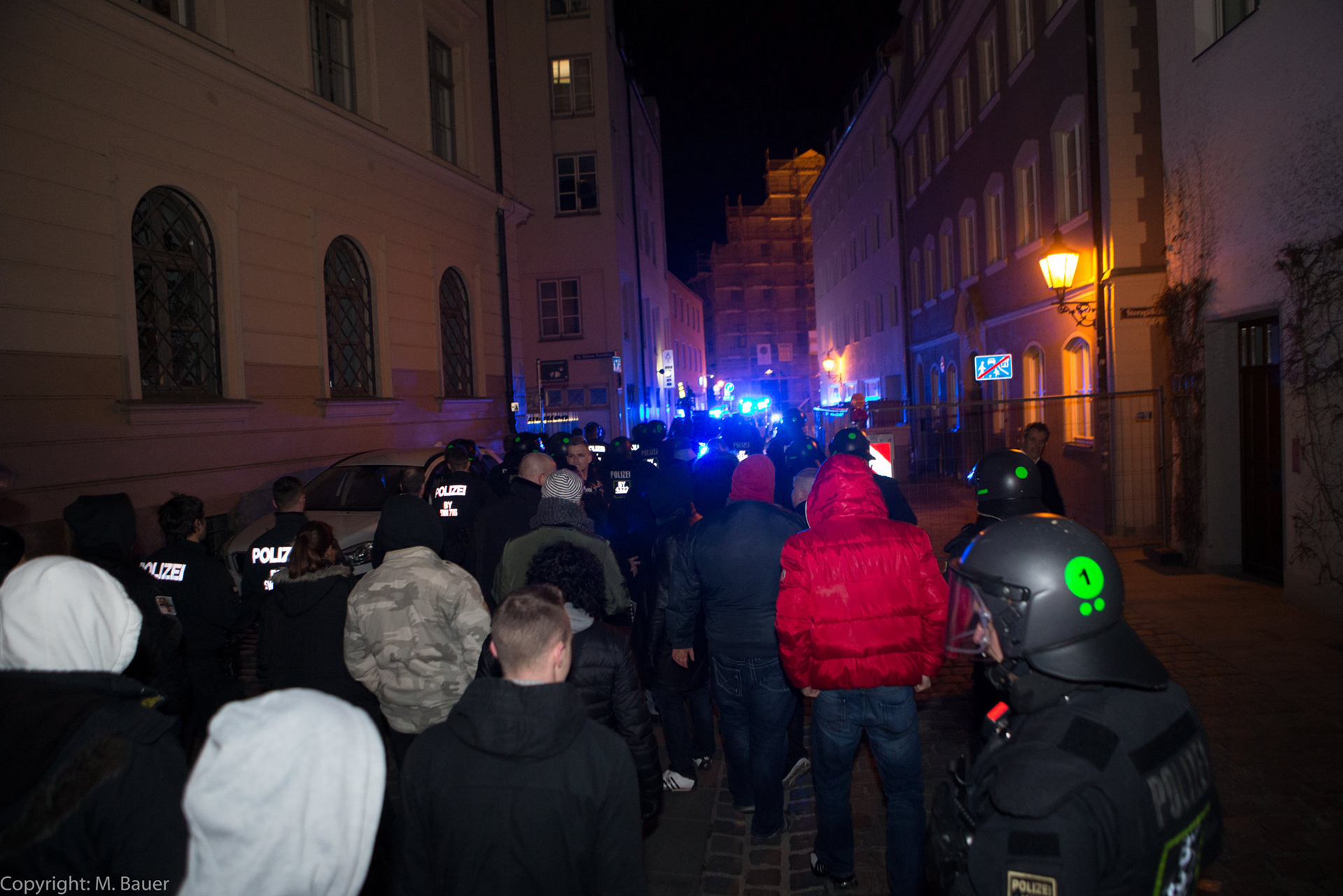 Mit einer großen Kundgebung wurde in Augsburg gegen eine Veranstaltung der AfD im Rathaus protestiert, die juristisch nicht zu verhindern war. Eine Gruppe Neonazis versuchte sich der Veranstaltung mit der AfD-Vorsitzenden Frauke Petry anzuschließen. Im Saal kam es zu Handgreiflichkeiten gegen Personen, die dort gegen die umstrittenen Äußerungen Petrys Position bezogen.