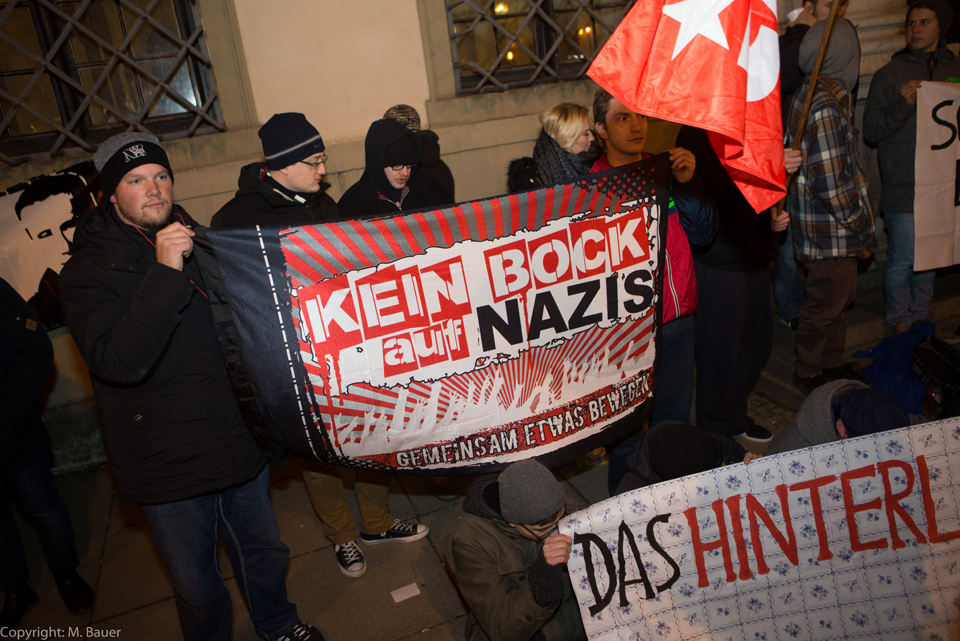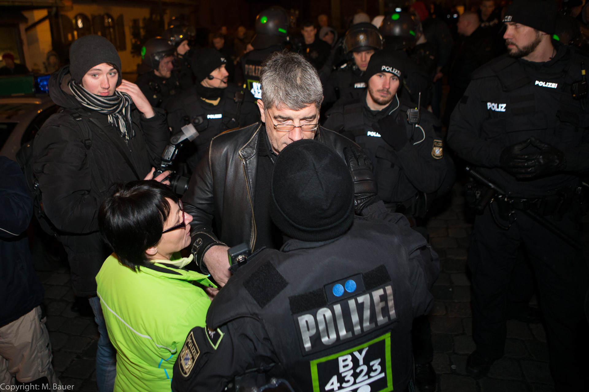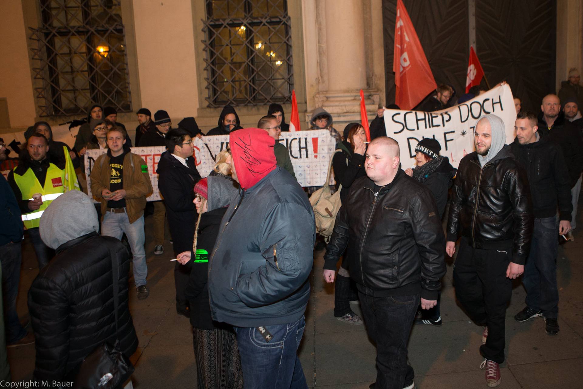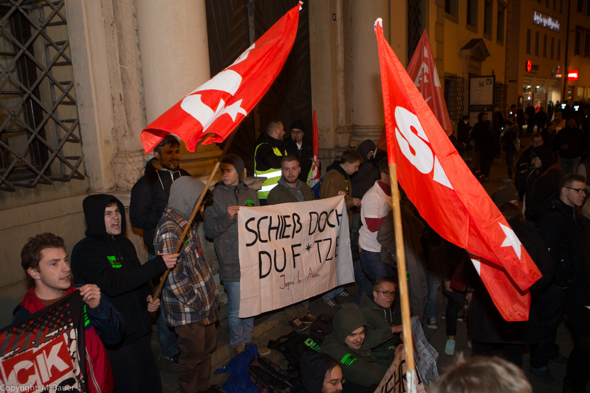 Mit einer großen Kundgebung wurde in Augsburg gegen eine Veranstaltung der AfD im Rathaus protestiert, die juristisch nicht zu verhindern war. Eine Gruppe Neonazis versuchte sich der Veranstaltung mit der AfD-Vorsitzenden Frauke Petry anzuschließen. Im Saal kam es zu Handgreiflichkeiten gegen Personen, die dort gegen die umstrittenen Äußerungen Petrys Position bezogen.