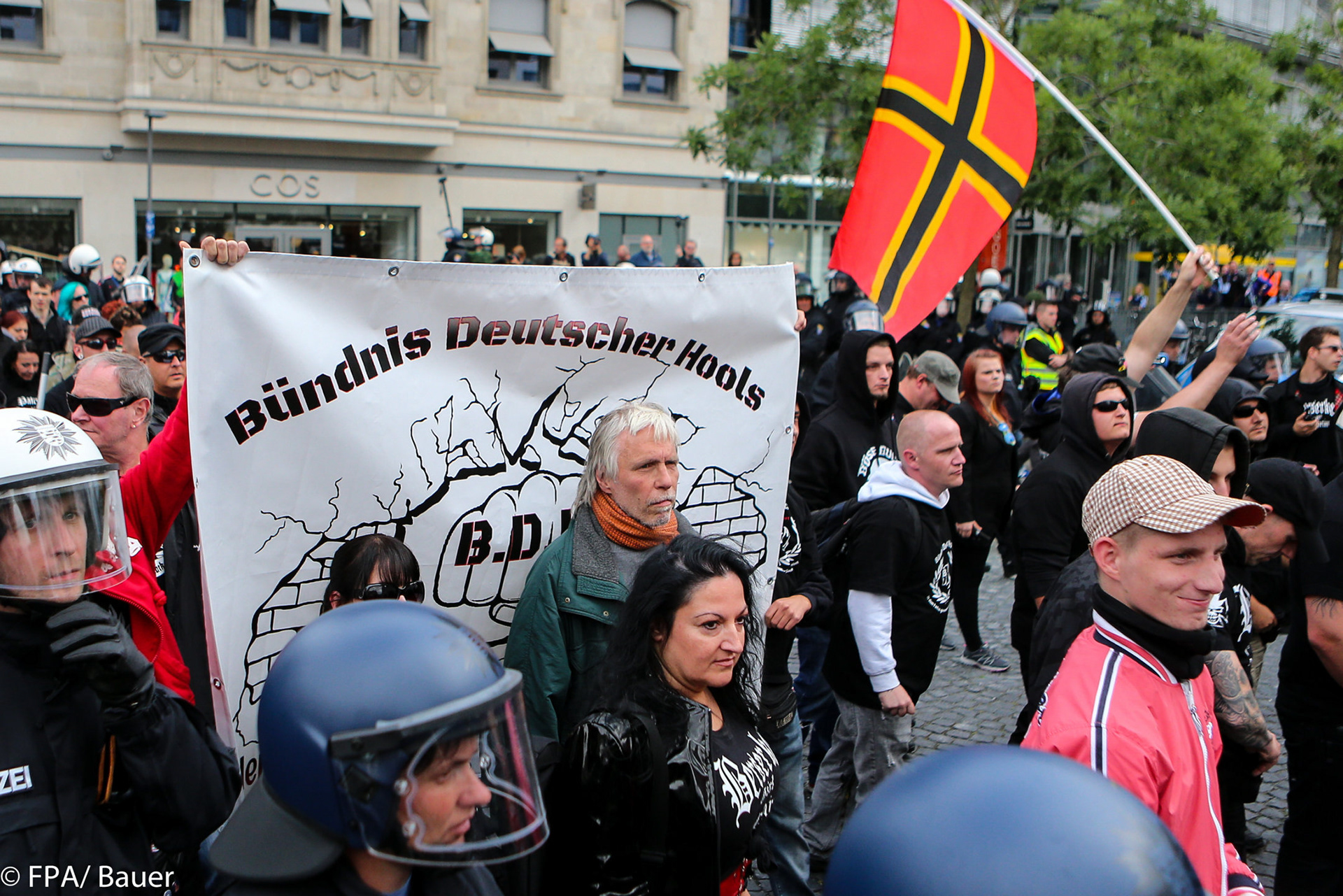 Frühere Verbündete gingen dem Dresdener „Mutterschiff“ bald von der Fahne und schlossen sich als „Widerstand NRW“ oder Karlsruhe der anderen Organisation an. Auf Facebook stichelten die Akteure gegeneinander, Grabenkämpfe im eigenen Milieu. Seitz legte für die Mobilisierung ihre Distanz zu Akteuren der neonazistischen Rechten ab, mit dem Hamburger NPD-Chef Thomas Wulff zählte ein erklärter Nationalsozialist zu ihren Facebook-Freunden. Gegen die Teilnahme eines bayerischen Funktionärs der Partei Die Rechte hatte WOW nichts einzuwenden. Insgesamt blieb das neonazistische Spektrum der Veranstaltung weitgehend fern, denn die Neonazis liegen mit Seitz & Co. aufgrund deren erklärter „Israel-Freundlichkeit“ in einem wichtigen ideologischen Punkt nicht auf einer Wellenlänge.